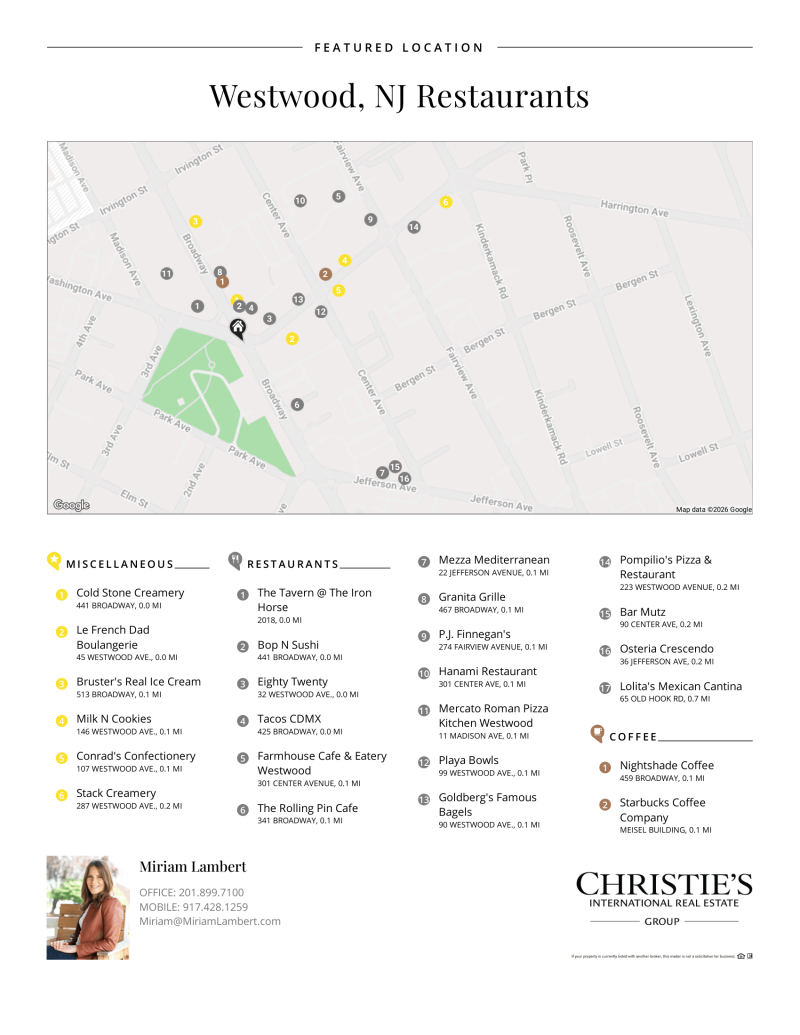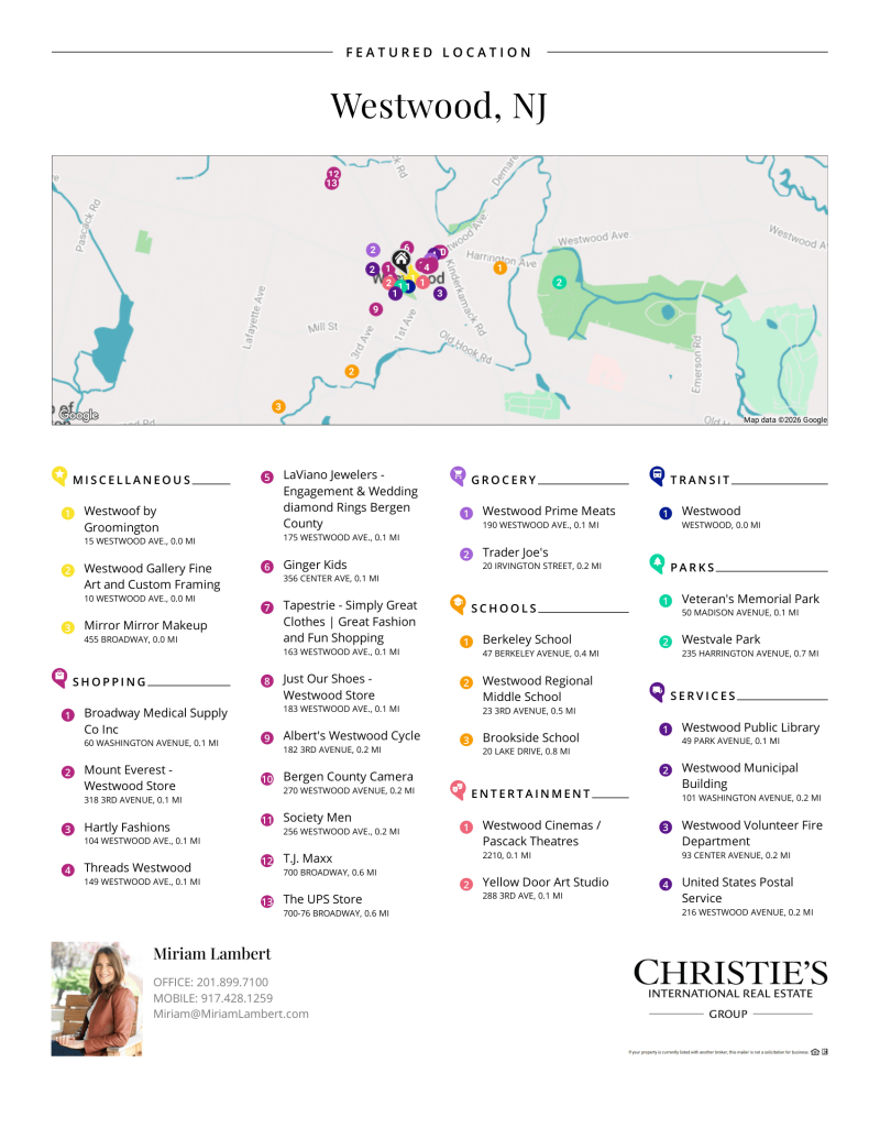 Whether it’s music on the green, downtown festivals, seasonal parades, or casual strolls to lunch, Westwood cultivates a close-knit yet animated environment. The borough’s calendar of events and local gathering spots make it easy to connect with neighbors and enjoy everyday moments. More information on the borough of Westwood can be found here: https://www.westwoodnj.gov